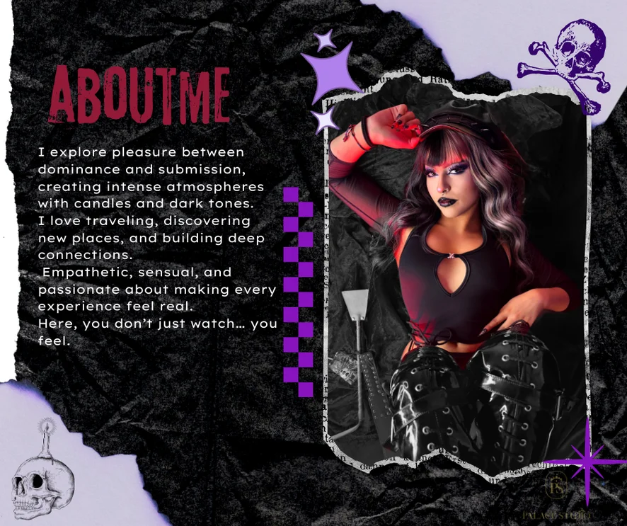 I explore pleasure between dominance and submission, creating intense atmospheres with candles and dark tones.